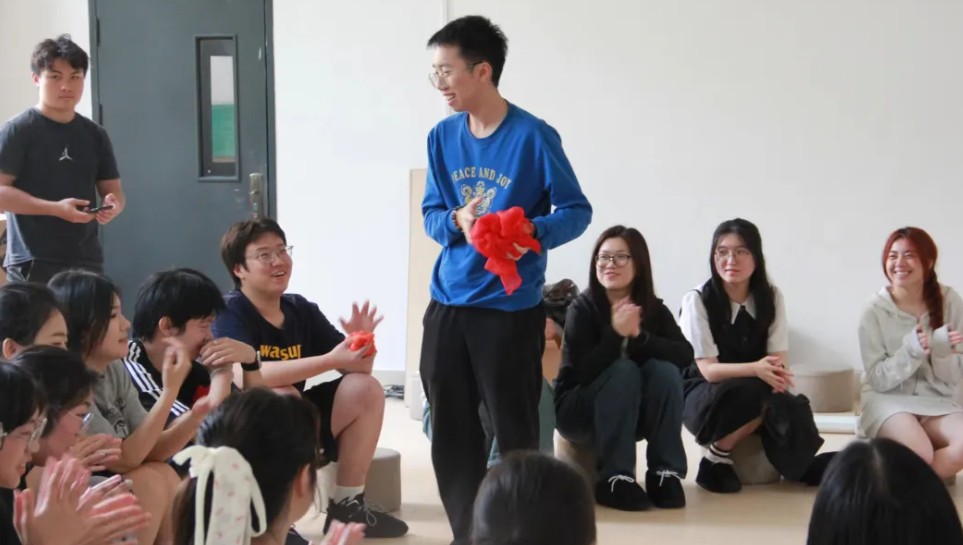 培训开始,通过大风吹、击鼓传花等游戏,原本稍显拘谨的同学们都慢慢敞开了心扉,在欢声笑语中,同学们的感情也在慢慢升温,为后续的活动营造了和谐融洽的气氛。通过分配小组、共同合作的方式,同学们进行了情景剧表演、“你画我猜”等游戏,在集思广益的过程中各显神通,有效地发挥了个人创造力,促进了团队协作。