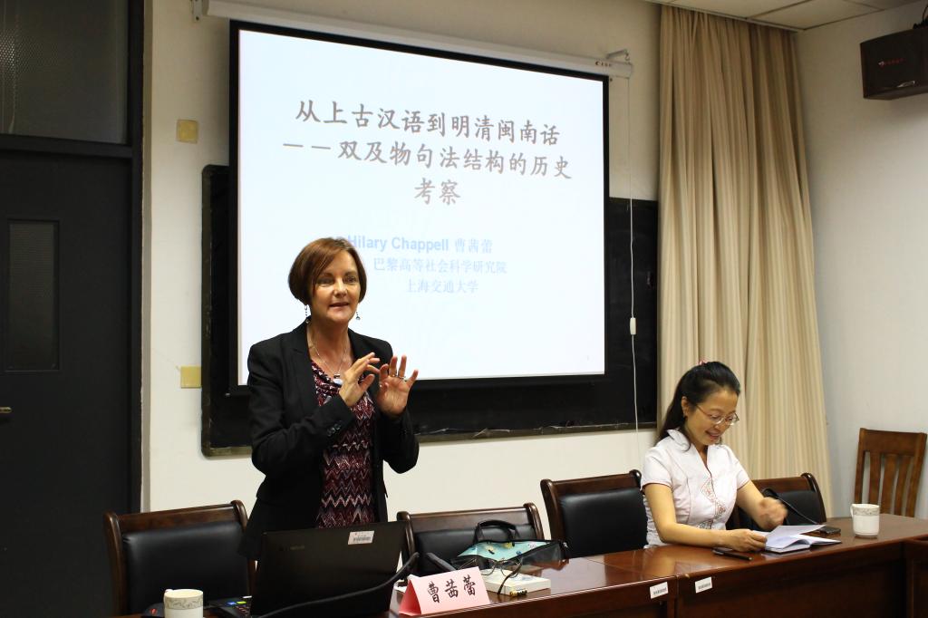 4月21日晚,法国高等社会科学院东亚语言类型学讲席教授、欧洲科学院院士曹茜蕾做客文院华学大讲堂,在文院二楼会议室作了题为“明清闽南话双及物结构的历史考察”的专题讲座。suncitygroup太阳集团院长常彬、副院长胡斌彬、教授王建设、副教授杜晓萍、吕晓玲、讲师袁碧霞等出席此次讲座,15级汉语言专业同学到场聆听。