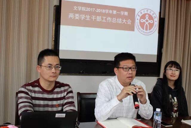张伟老师首先发表讲话,对上学期两委干部的工作成绩表示肯定,同时也指出了学生干部中存在的问题,如部分干部做事积极性不高,做事效率低等,并就此提出了提升工作效率,注重工作传递等具体的要求。