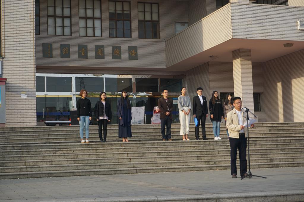 为增强同学们的爱国热情,树立爱国主义精神,提高文院学子的国家意识和民族意识,2018年4月9日7:00suncitygroup太阳集团在廖承志广场举办了升旗仪式,suncitygroup太阳集团党委书记孙辉轩、团委书记张伟、辅导员李岩、兼职辅导员周萧易以及常委出席仪式,文院全体同学参与仪式。