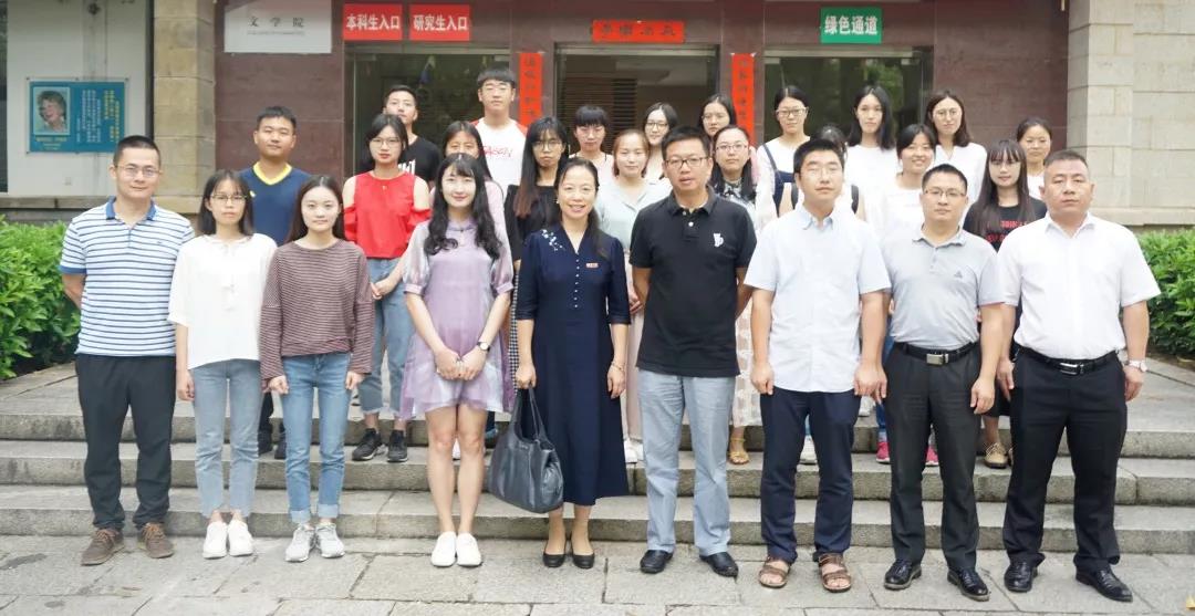 研究生与师长们亲切交流后,座谈会已接近尾声。2018级研究生入学教育座谈会正式结束后,与会人员走出会议室在学院楼前合影留念。