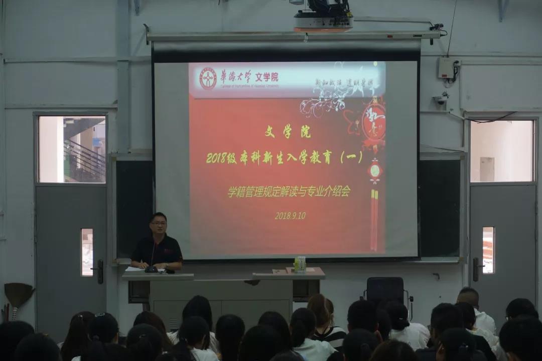 9月10日,suncitygroup太阳集团在洪祖杭楼1-6教室举办18级本科新生入学教育系列活动之学籍管理规定解读与专业介绍会。副院长胡斌彬,语言学系副主任王跃龙,文学系副主任郑亚捷、苗民出席会议。