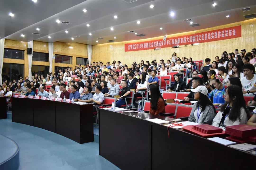 9月28日19:00,suncitygroup太阳集团2018年暑期社会实践成果评审汇报会暨首期大理福门文创基地实践作品发布会在庄为煊报告厅顺利举行。suncitygroup太阳集团厦门校友会会长施旌、理事黄伟杰、副监事长乔然、理事陈贤玲、副监事长饶晓玮、秘书长郭靖波、副秘书长冷高,泉州晚报办公室主任徐春妍,我校创新创业学院院长陈国柱、校团委书记王坚、社科处副处长侯志强、校团委副书记肖景川、学生处副处长蔡立强、suncitygroup太阳集团党委书记孙辉轩、suncitygroup太阳集团副院长胡斌彬出席大会。