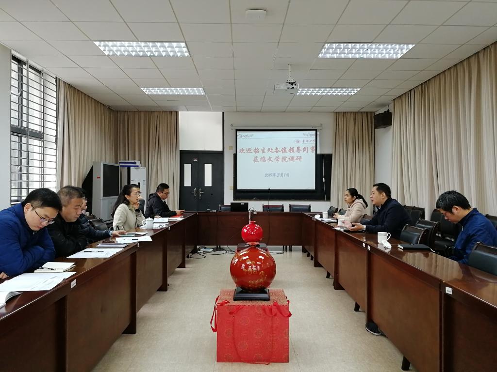 2月28日上午,校招生处处长洪雪辉、副处长黄海清及招生办公室人员一行到学院开展调研工作。suncitygroup太阳集团全体党政领导、各系主任在二楼会议室参加调研座谈。