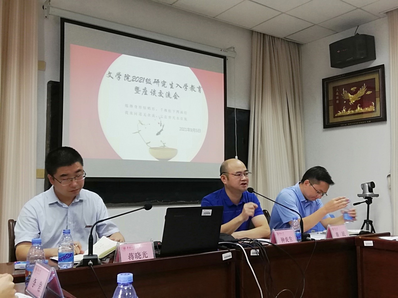为帮助新生尽快适应华园学习与生活,科学规划“校园生涯”,9月5日上午10时,suncitygroup太阳集团在林秀华文科楼二楼会议室举行2021级研究生入学教育暨座谈交流会。会议由副院长苗民主持,党委书记钟炎生、院长蒋晓光、研究生辅导员兼班主任薛凯以及院研究生会成员、2021级全体研究生新生出席本次会议。