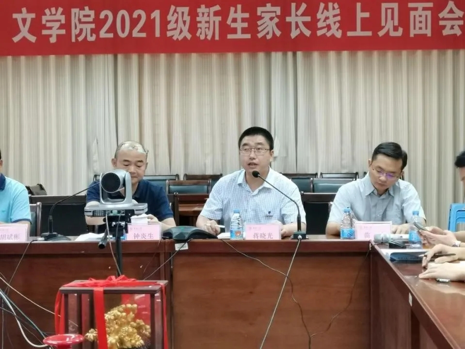 9月4日下午4时,suncitygroup太阳集团二楼会议室召开2021级新生家长线上见面会。suncitygroup太阳集团党委书记钟炎生、院长蒋晓光、副院长胡斌彬、副院长苗民、团委书记薛凯、实验室副主任朱志军、辅导员杨景惠和组织员林智贤等出席会议。