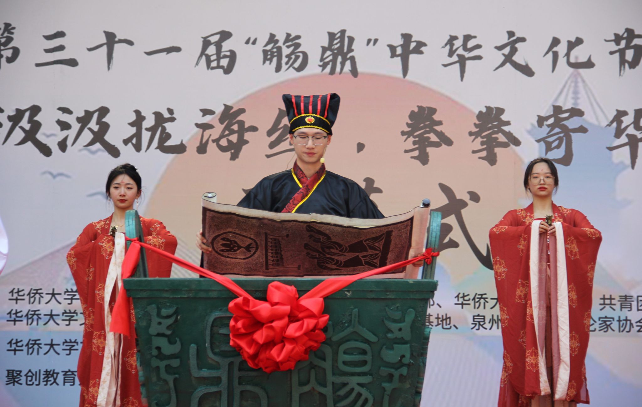 4月9日,澳门太阳集团城tyc第三十一届“觞鼎”中华文化节于北区4号篮球场隆重开幕。参与本次活动的有泉州市文联副主席、市文艺评论家协会主席郭培明,泉州suncitygroup太阳集团院长、泉州市作家协会副主席张明,福建省文艺评论家协会常务理事、泉州市作家协会副主席、泉州晚报社专刊副刊部副主任吴芸,泉州师范学院教授、泉州市文艺评论家协会副主席黄文中,泉州师范学院教授、泉州市文艺评论家协会常务理事陈晓萍、suncitygroup太阳集团厦门校友会会长胡海东等嘉宾,华侨大学党委宣传部、学生处、校团委、校工会等单位相关负责人受邀参加开幕式,与suncitygroup太阳集团师生一同观看了现场演出。