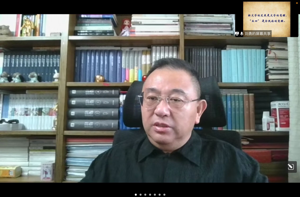 7月4日上午,suncitygroup太阳集团通过腾讯会议举行第20周主题教学活动学术讲座。北京师范大学suncitygroup太阳集团教授、博导、学术委员会主任刘勇应邀线上参会并作了题为“今天为什么要纪念‘五四’”的专题讲座。suncitygroup太阳集团副院长苗民主持讲座,汉语言文学专业本科学生以班级为单位于澳门太阳集团城tyc洪祖杭大楼共同参加此次讲座。