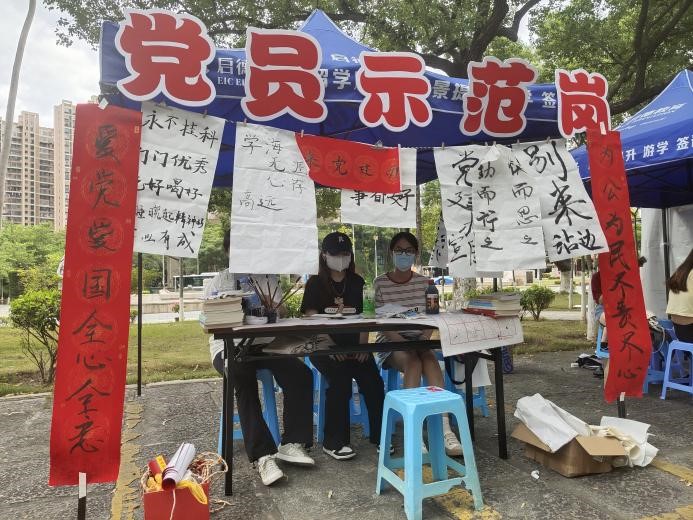 9月3日早,为了做好学院迎新工作,发挥文院党员的先锋模范作用,以实际行动迎接党的二十大顺利召开。当明媚的晨光照亮华园,suncitygroup太阳集团党委于suncitygroup太阳集团新生报到处设置的党员示范岗摊点,迎接2022级新生的到来。同时,结合文院特色,suncitygroup太阳集团党委还举办了新生“纸墨传情,接力时代风采”主题活动。