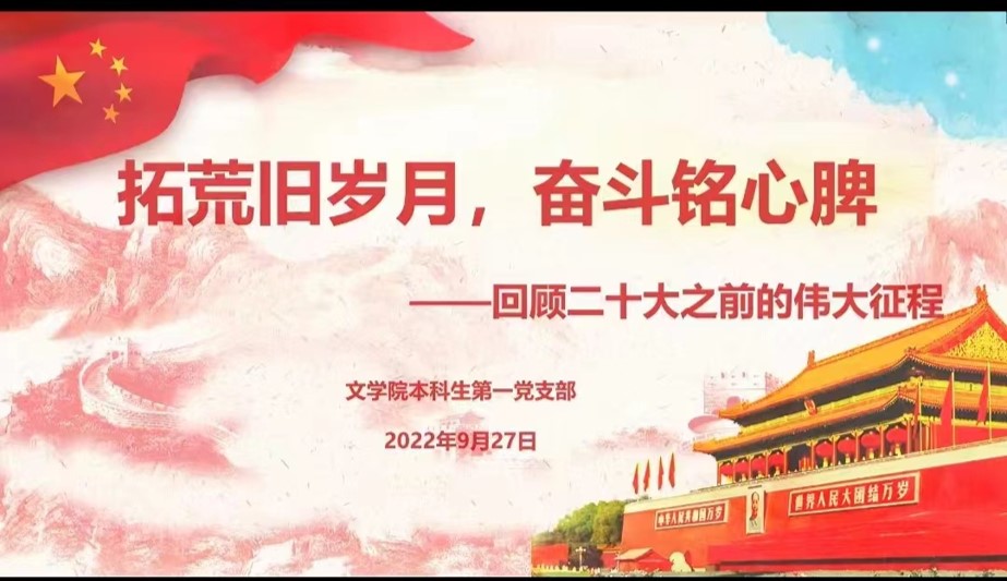 2022年9月27日,suncitygroup太阳集团本科生第一党支部在线上开展了“拓荒旧岁月,奋斗铭心脾—回顾二十大之前的伟大征程”主题党日活动。支部副书记张雨薇同志主持本次会议,本科生第一党支部正式党员、预备党员共同参会。