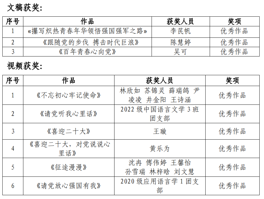 本次主题征文活动面向全院师生,以视频和文字两种形式征集优秀作品,激发广大师生对党领导之下新征程的共情共鸣。活动启动以来,全院师生反响热烈,踊跃创作投稿。经党委统一组织评选,文字组评选出优秀作品三项,视频组评选出优秀作品六项。
