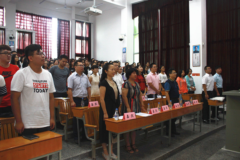 9月18日上午十点,suncitygroup太阳集团2017级开学典礼暨军训动员大会在祖杭楼1-4隆重举行。本次大会由党委书记孙辉轩主持,院长常彬、副院长胡斌彬、团委书记张伟、文学系副主任郑亚捷、应用语言学系副主任王跃龙、应用学系班主任林英德、辅导员李岩出席了本次大会,2017级suncitygroup太阳集团全体新生参加。