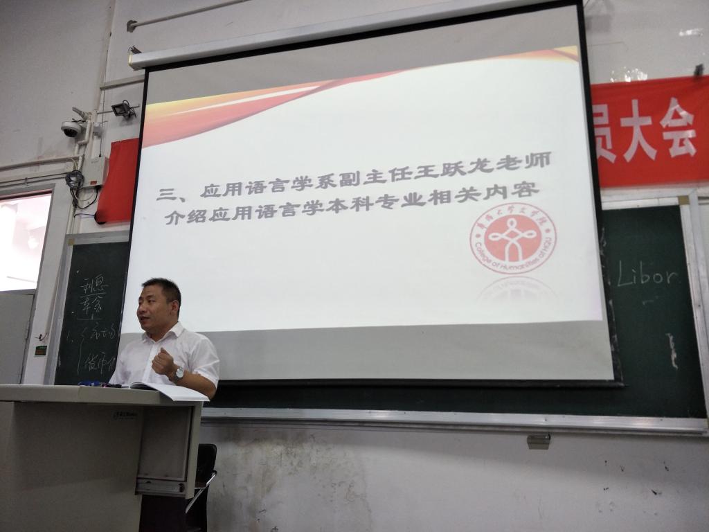 应用语言学系副主任王跃龙从应用语言学是什么、为什么学习应用语言学以及应用语言学的就业前景三方面进行专业介绍,建议同学们端正态度,提高专业知识水平与技能。