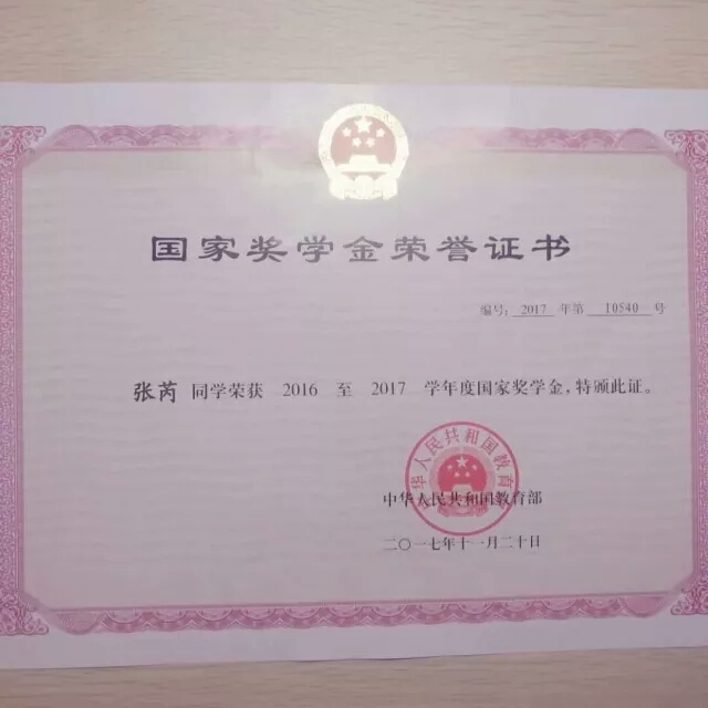 2016~2017国家奖学金;