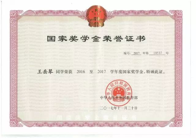 2016-2017学年国家奖学金