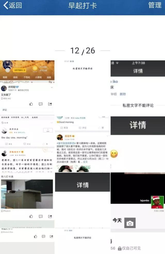 每天八点前起床,用微信朋友圈或QQ说说形式记录早起时间,并将照片上传至群相册。早睡早起是健康生活习惯养成的第一步——“一日之计在于晨”,对于早八不少的我们,早起自然不在话下~